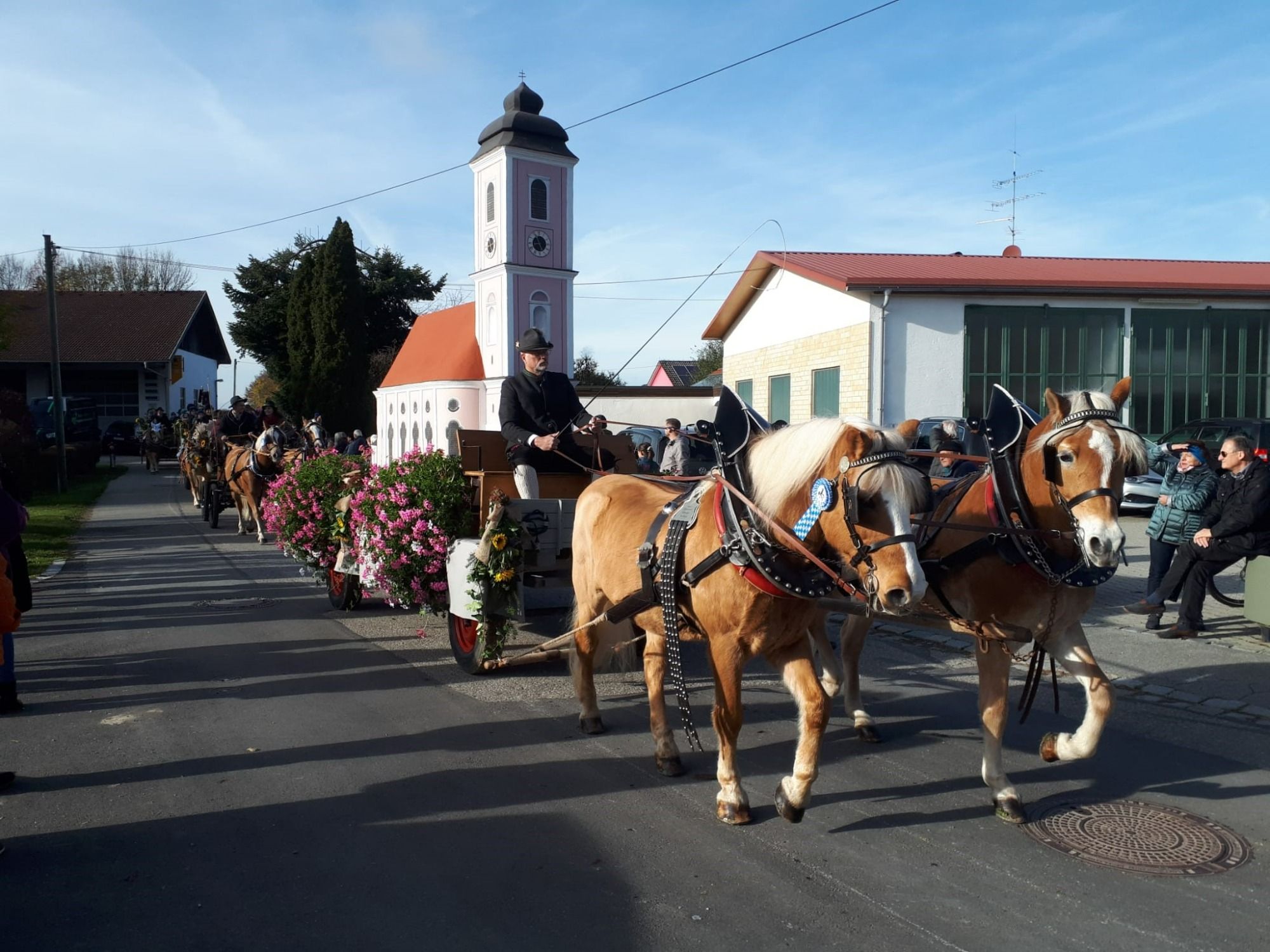 Nach 2 Jahren Corona-Pause fand in Preisendorf wieder der Leonhardiritt statt. Wir haben dafür, wie jedes Jahr, den Wagen mit der Tadinger Kirche geschmückt.